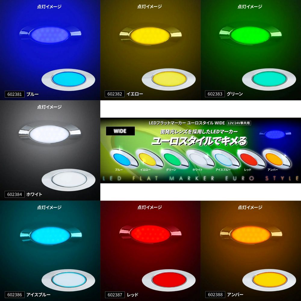 JET LED フラット マーカー ユーロ スタイル \ WIDE / ワイド 全7色 12/24V 94×39×11mm 602381 602382 602383 602384 602386 602387 602388
