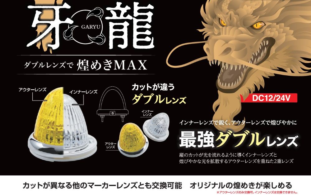 YAC LED マーカー 《 牙龍 ( がりゅう ) 》 プラ/アクリル アウターレンズ ダブルレンズ 12/24V 共用 全6色 CE511 512 513 514 515 517