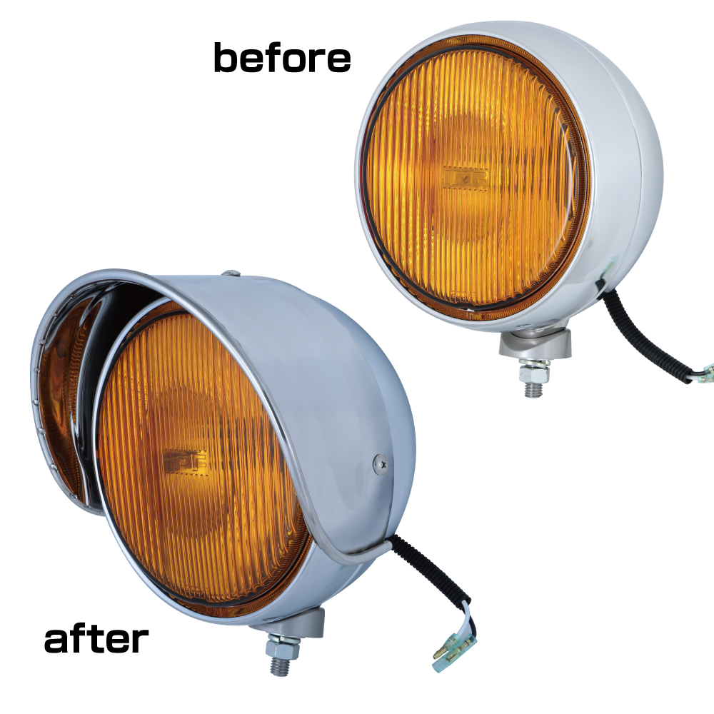 JET フォグランプ バイザー ヒサシ 鏡面 + 丸棒巻き + プレスライン 2枚セット IPF製 200φ メッキランプ 用 9Mシリーズ 502430×2