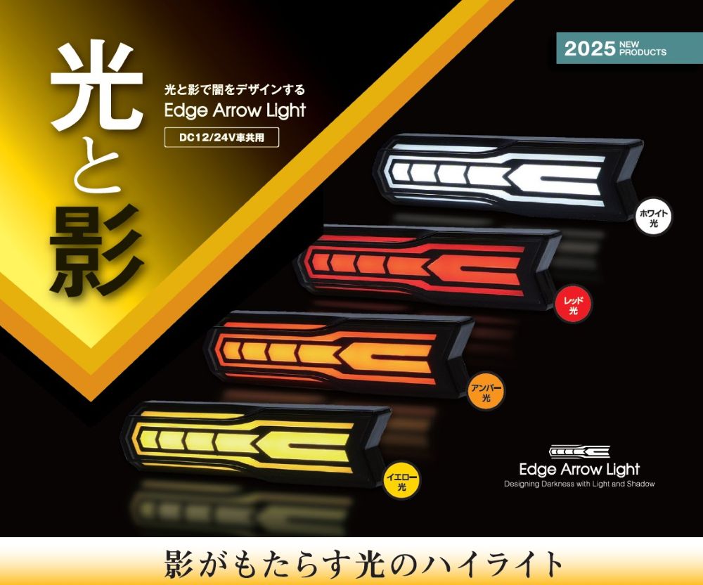 YAC LED 《 Edge Arrow Light 》 エッジアローライト 12/24V 共用 全4色 W122mm×H33mm×D19.5mm CE496.497.498.499