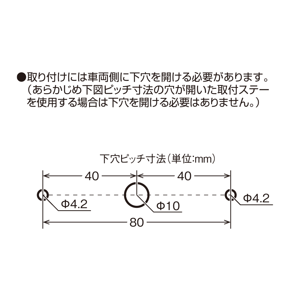 下穴(φ4.2×2箇所・φ10×1箇所)を